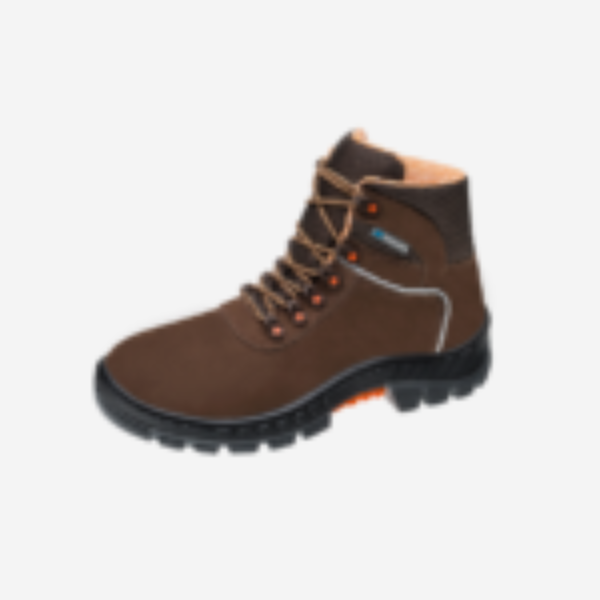 Bota ocupacional com cabedal em couro Nubuck marrom claro.