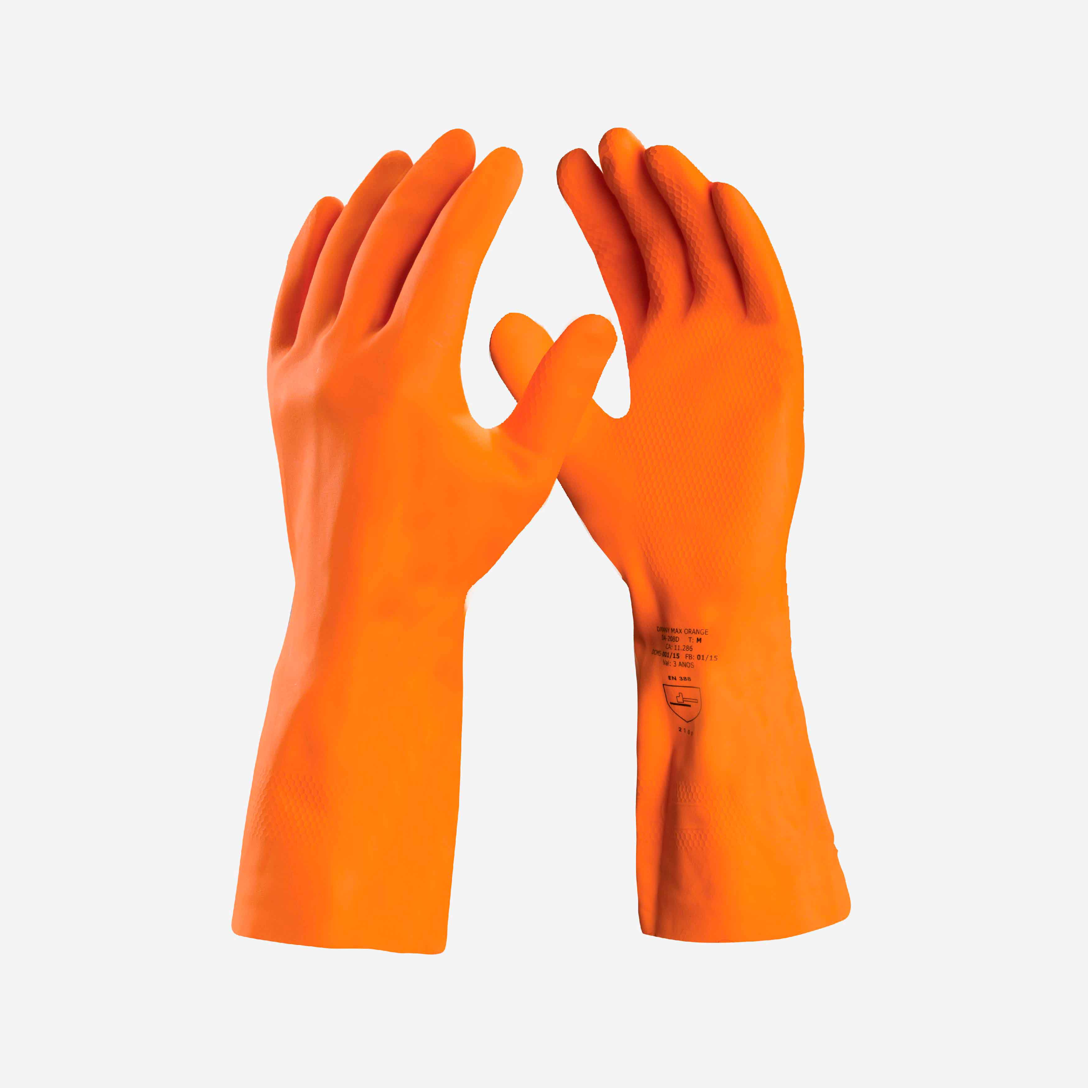 A luva MAXORANGE é fabricada 100% em borracha natural Látex com espessura de 0.70 mm. Por ser mais espessa que as luvas comuns de látex, possui excelente resistência a abrasão, rasgos e perfurações, além de uma excelente resistência a tração. Possui resistência química contra ácidos, cetonas, sais, detergentes, alcoóis, produtos alcalinos e gorduras. A palma com antiderrapante oferece segurança ao usuário ao manusear objetos secos ou molhados.CA 11286 [Consultar CA]