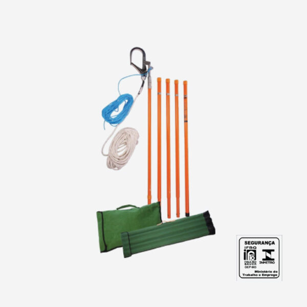 Bastão de ancoragem utilizado para criação de linha de vida provisória durante a realização de trabalhos em altura, permite que o trabalhador esteja ancorado durante o acesso, decesso e permanência em altura sistema; deve ser utilizada juntamente com dispositivo trava-quedas e cinturão de segurança tipo paraquedista.