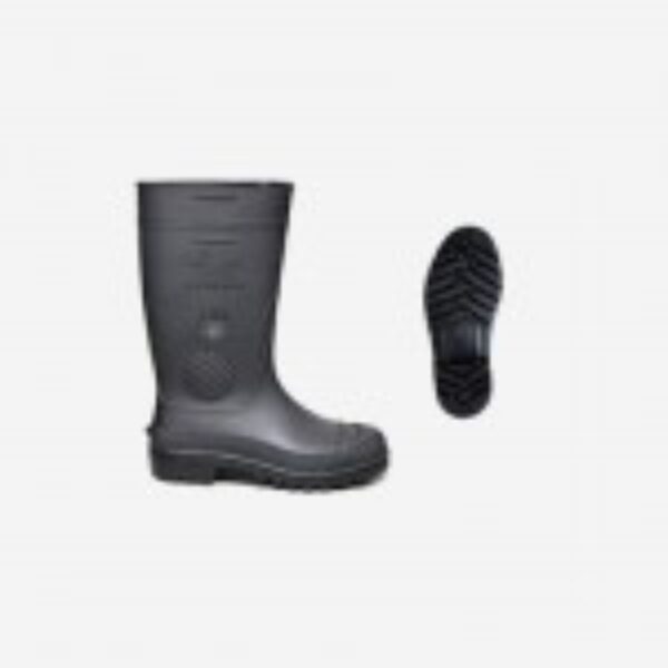 Calçado ocupacional tipo bota, confeccionado em PVC injetado e impermeável na cor preta, solado antiderrapante na cor preta, gravação “Calfor Pampeana” nas laterais externas do cano, acabamento interior sem forração.