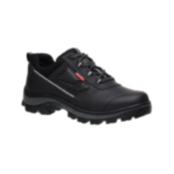 Solado em Borracha, abrasividade, que possibilita amortecimento com absorção de impactos na entressola e no calcanhar.