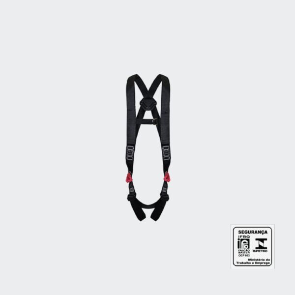 Totalmente ajustável, 01 ponto de conexão, 02 número de ajustes. Fibra em Poliéster.