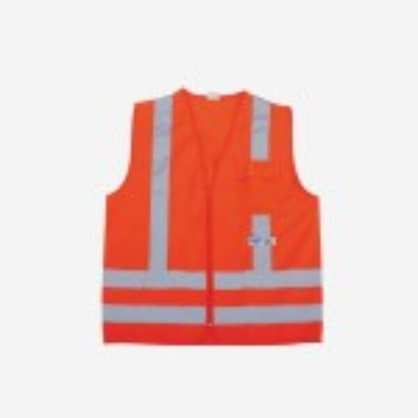 Colete Refletivo 1 Bolso RFX confeccionado em poliéster laranja fluorescentes, faixas refletivas duplas, fechamento frontal em zíper.